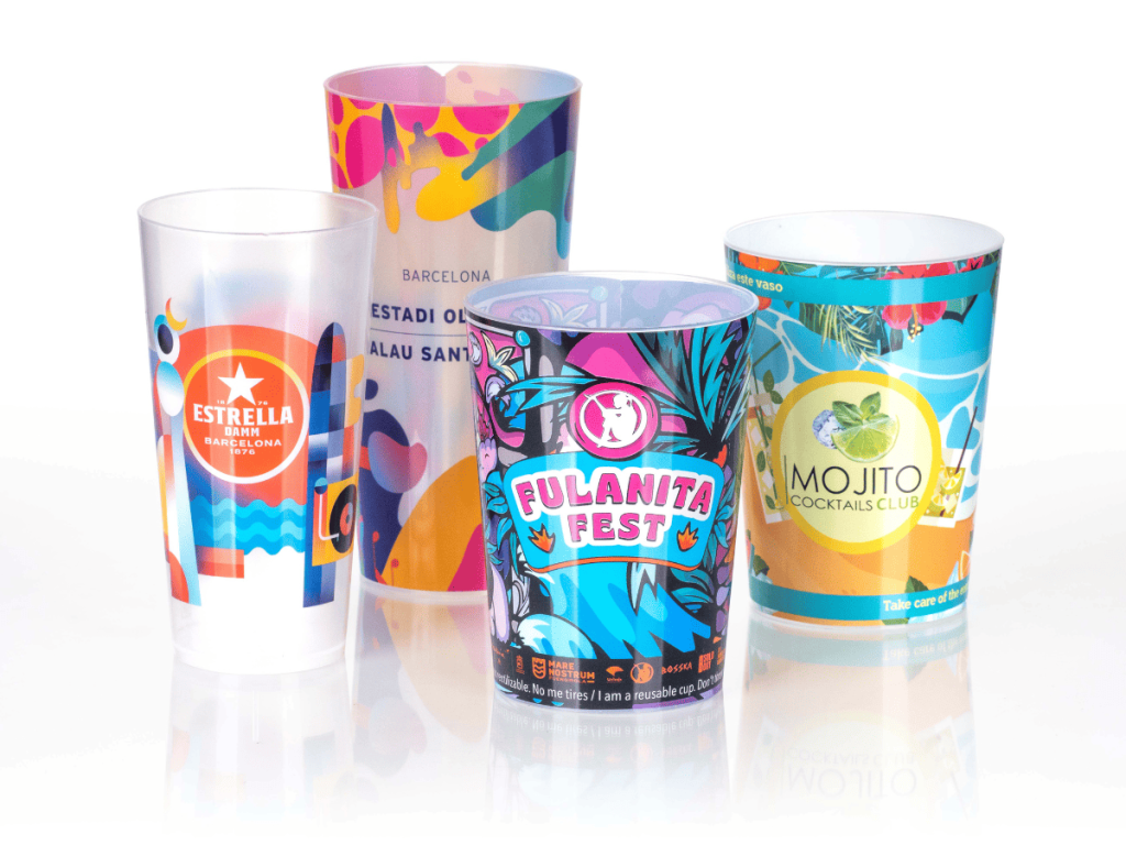 Además, tenemos la capacidad de producir vasos para eventos de grandes magnitudes, con producciones que pueden alcanzar hasta cientos de miles de unidades. Nuestra experiencia en festivales internacionales como Primavera Sound y Sónar, así como con grandes marcas como FC Barcelona y Estrella Damm, nos permite manejar proyectos de alto volumen con la misma calidad y precisión que eventos más pequeños.